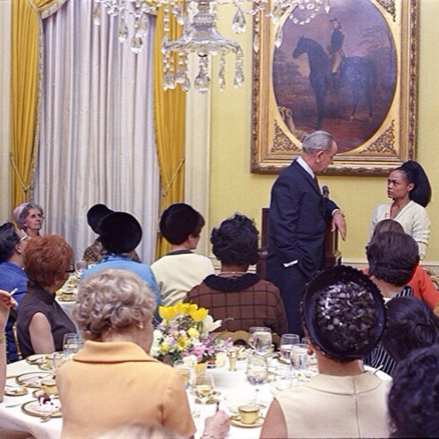 Eartha Kitt speaking truth to power at a 1968 luncheon at the White House hosted by Lady Bird Johnson which resulted in Kitt being blacklisted in the US for nearly a decade.