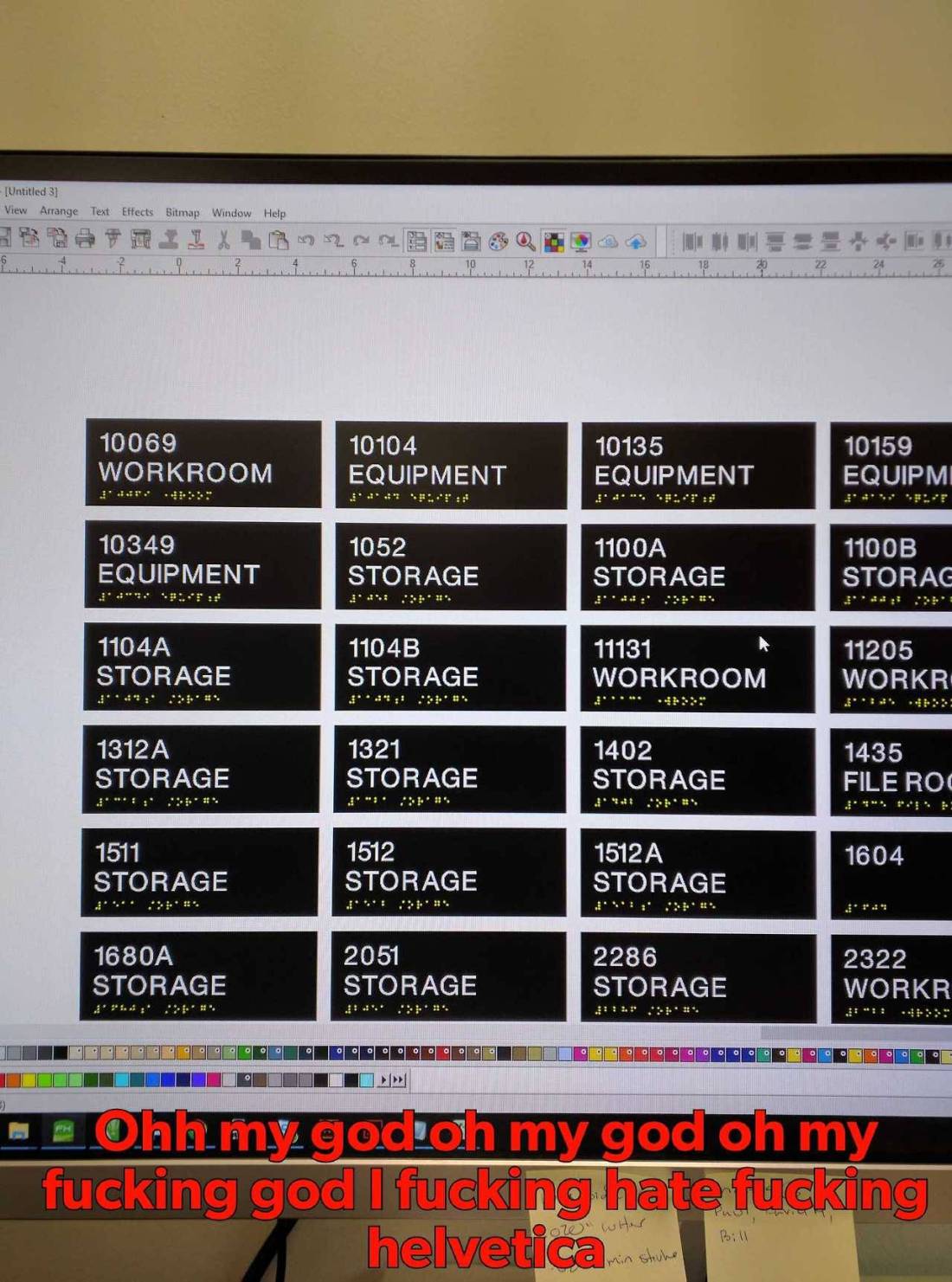 I hate helvetica. Words fail me. No, that’s a lie, I’ve got plenty: you think comic sans is bad? At least it kerns without drama. I am using Flexisign, which gives me kerning override modes that are absolutely broadsword swinging brutal, and that still isn’t enough to make helvetica behave. Helvetica is a white woman who doesn’t like her chin length bob and wants to speak to the manager. There is no way to satisfy this font. It is the worst.