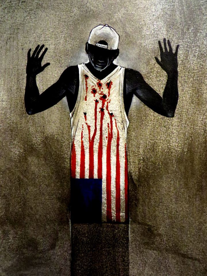It’s not about me, it’s not about promoting my art, and it’s not just about Mike Brown. This piece is about all those right now who are being persecuted by the state for their color. This is for every unwarranted traffic stop, every beating by an officer, every black child who is afraid to walk home from school, not from bullies, or pedophiles, or muggers, but scared to death by the very people who swore an oath to serve and protect them.