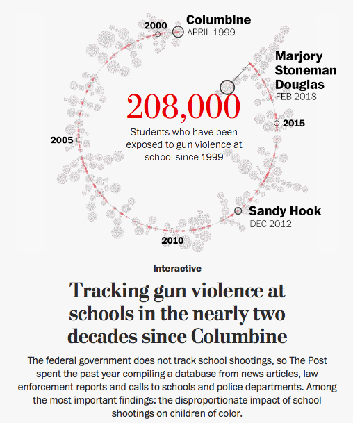 Since neither Congress nor the White House will allow federal funding for such research (because of the motherfucking NRA, what else), the Washington Post went ahead and tallied school shootings over almost the past 20 years.