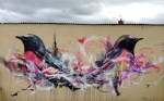 Brazilian artist L7M (previously) depicts owls, ducks, sparrows, and other birds materializing from a chaotic swirl of dripped paint and flourishes of spray.