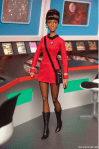 Barbie Uhura is dressed in her original red Federation uniform and comes with a communicator, which she can hold her hand, and a tricorder with a shoulder strap.